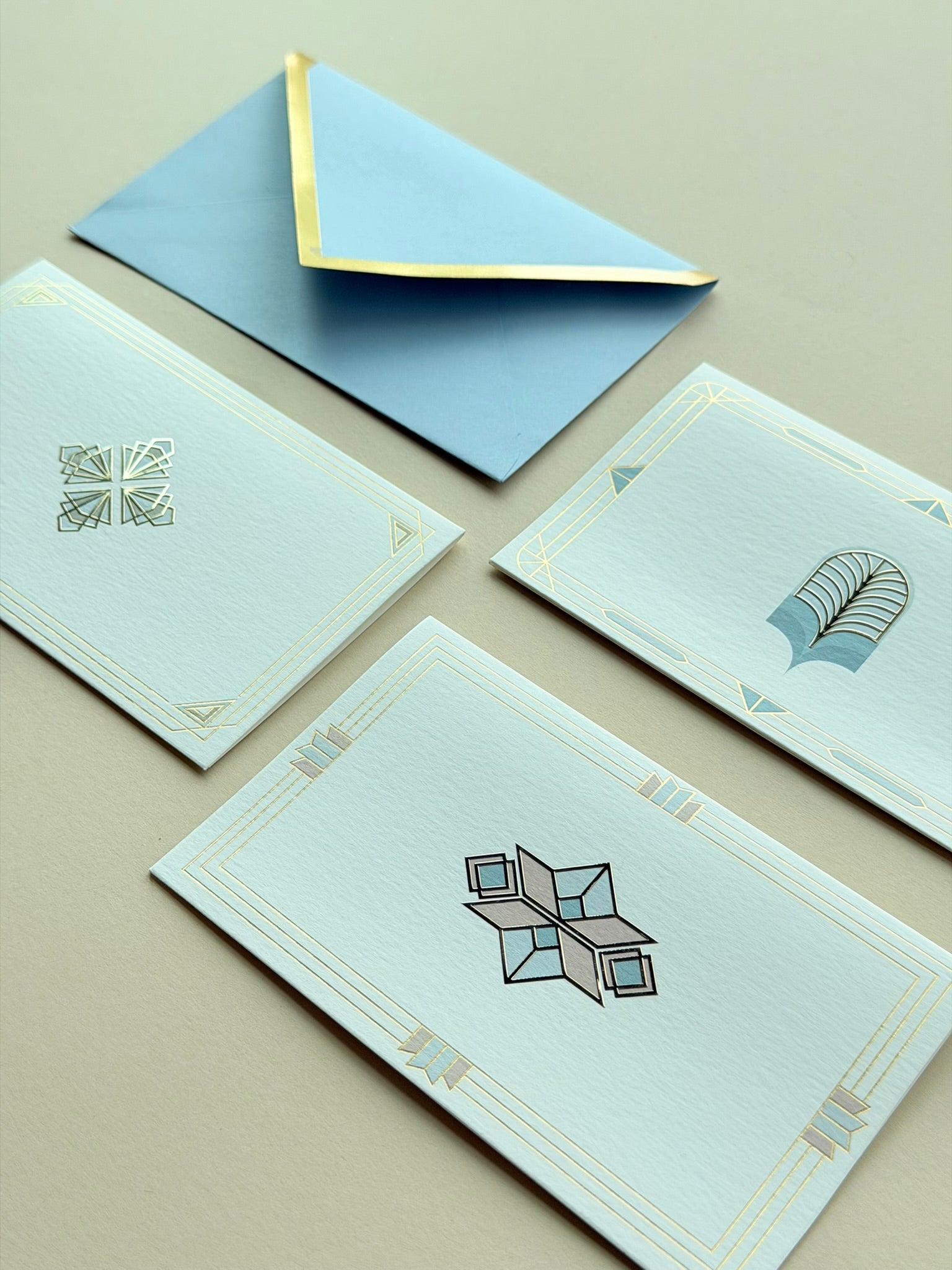 Inspired by the bold elegance unveiled at the 1925 Paris Exhibition, The Gilded Era collection by Paperfields and Art Deco Mumbai Trust celebrates the spirit of Deco through refined patterns and geometry. Each motif - frozen fountains, chevrons and abstract forms - is reimagined with intricate detailing and gilded accents. A tribute to design and heritage of this Gilded Era.