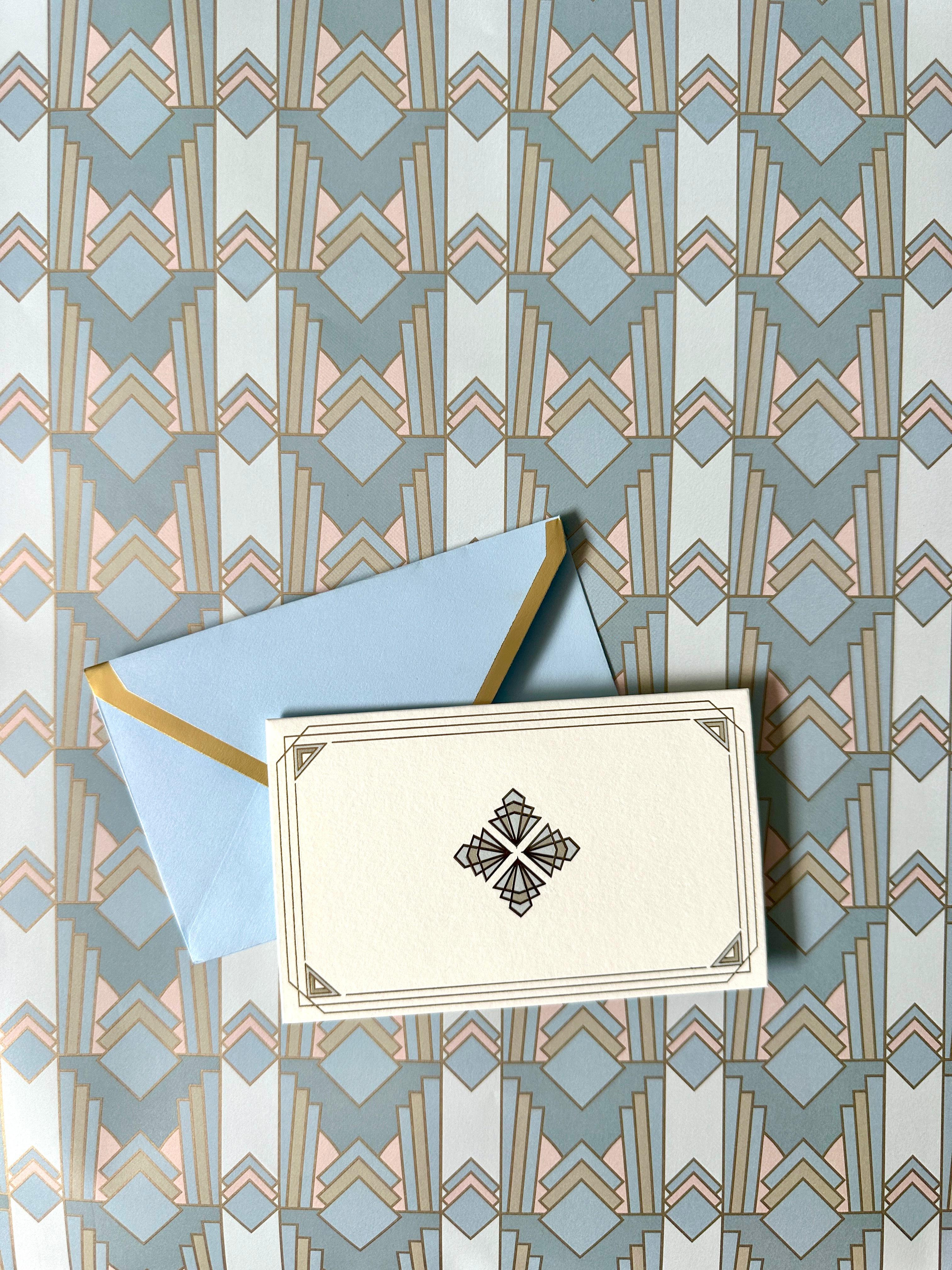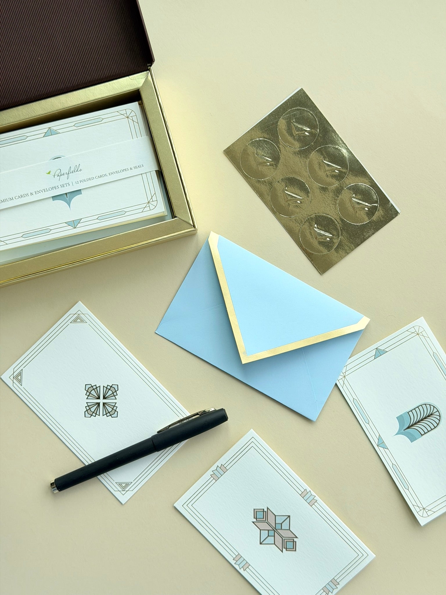 - Set of 12 folded cards with printed lined envelopes, 12 seals