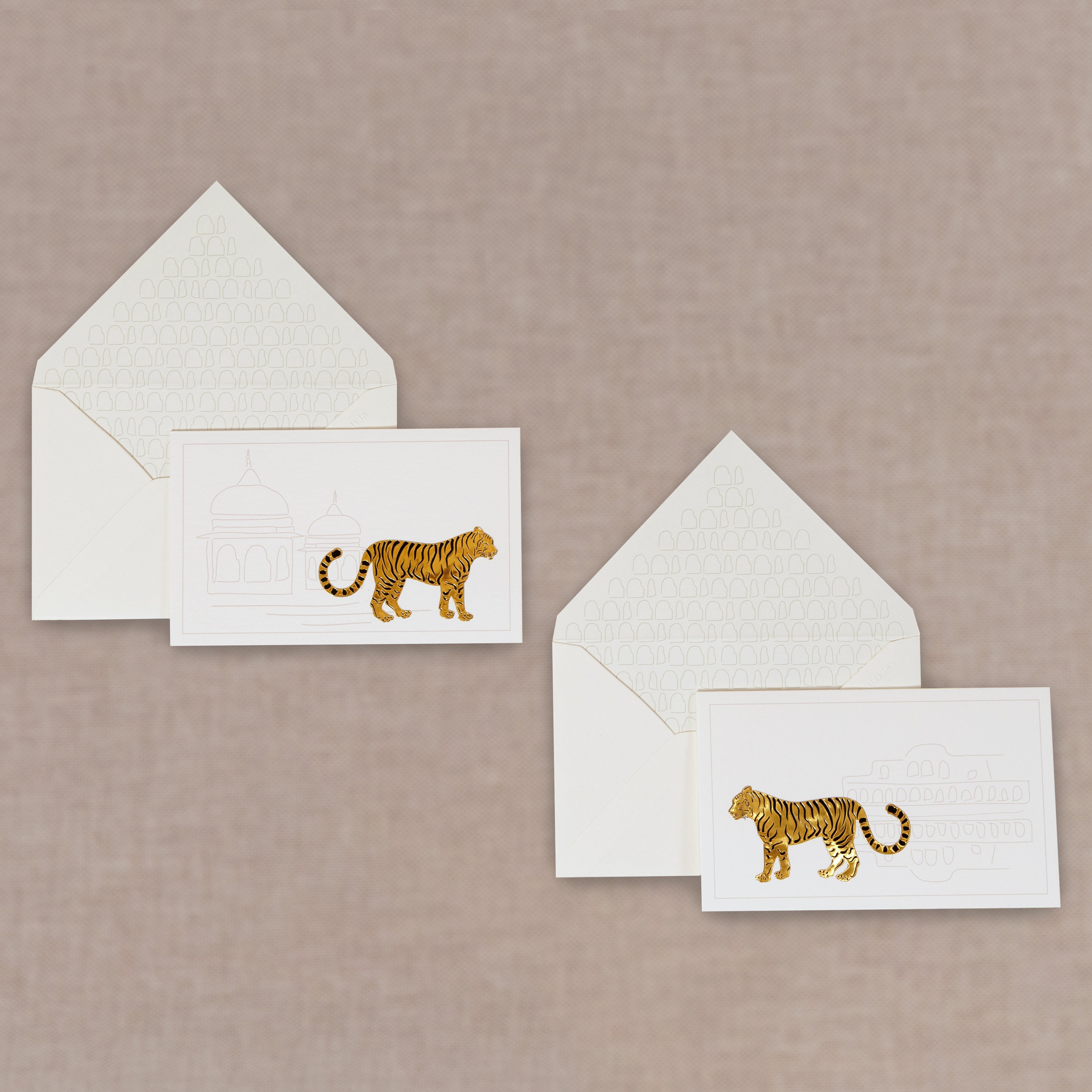 A tribute to Ranthambore’s legendary lineage, this duo gift kit brings together two majestic icons — Machli, the formidable tigress, and Sundari, her regal heir. With evocative artwork set against the forest’s ancient ruins and beautifully crafted envelopes, this set celebrates their grandeur and the wilderness they call home. With part of the proceeds of this collection going back to the Conservation Wildlands Trust (http://conservationwildlands.org/) making it meaningful to use and gift.